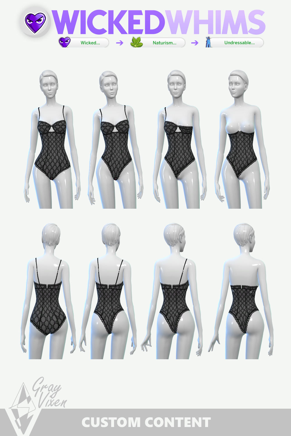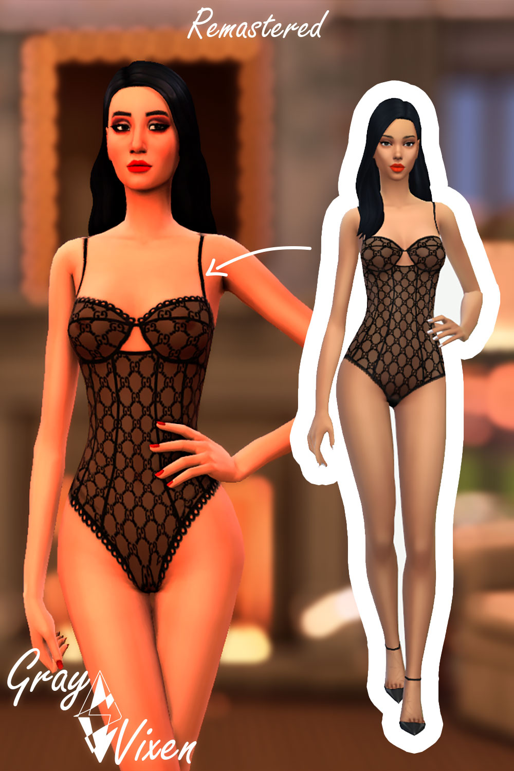 “Gucci Tulle Lingerie” has been Remastered! New textures and full compatibility with Wicked Whims Undressables are now included. Enjoy!